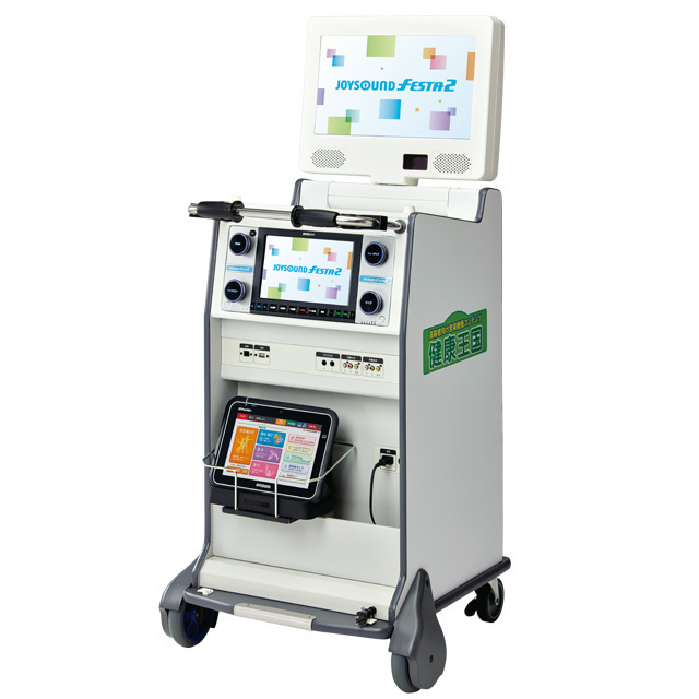 【基本セット】カラオケ本体(1台)・アンプ(1台)・ワイヤレスマイク一式(1セット)・電子目次本(1台)・スタンドスピーカー(1セット)・モニタースピーカー(1台)・譜面台(1台)